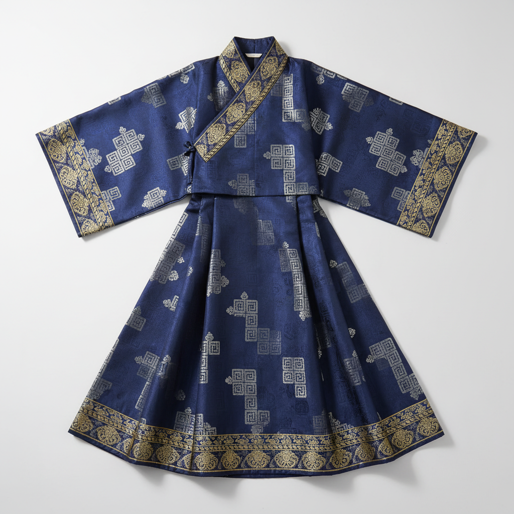面向当代穿着场景的馆藏级作品,强调廓形与面料肌理;以回纹为文化锚点,采用边饰织带呈现细节,来自北京工艺语汇,寓意“循环与守护”。