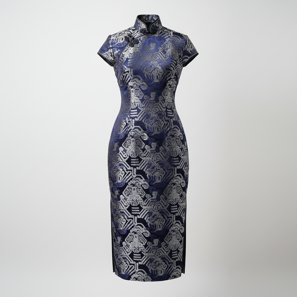 面向当代穿着场景的馆藏级作品,强调廓形与面料肌理;以云雷纹为文化锚点,采用提花织造呈现细节,来自杭州工艺语汇,寓意“延绵不绝”。