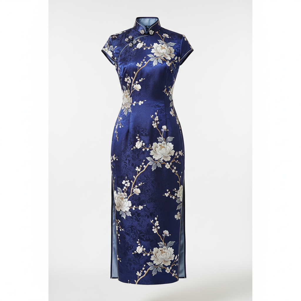 面向当代穿着场景的馆藏级作品,强调廓形与面料肌理;以折枝花卉为文化锚点,采用苏绣呈现细节,来自苏州工艺语汇,寓意“生机与丰收”。