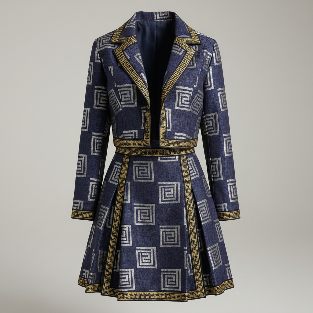 面向当代穿着场景的馆藏级作品,强调廓形与面料肌理;以回纹为文化锚点,采用边饰织带呈现细节,来自北京工艺语汇,寓意“循环与守护”。