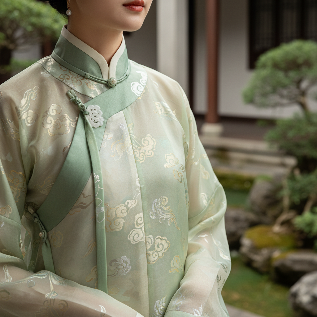 以中国汉代语境中的云锦为纹样源,传统织锦只点到为止;丝毛混纺让风一过便有轻云般的动势。用于书院讲座,把“含蓄之美”留在衣褶的回响里。 让衣冠的气韵,在日常里轻轻落下。