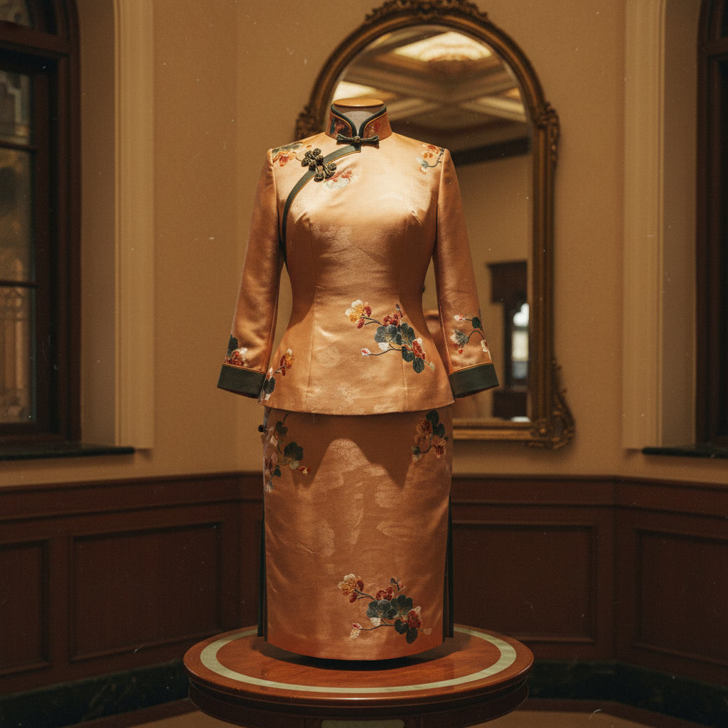 从苏州的工艺语汇出发,把海棠纹压进暗纹提花与盘扣节奏;提花/缎面保留挺括与垂坠的平衡。适配商务晚餐,让“富贵与秩序”不必高声宣告,只在近距离才被看见。 把一段城市的光影,收进一粒盘扣的分寸里。