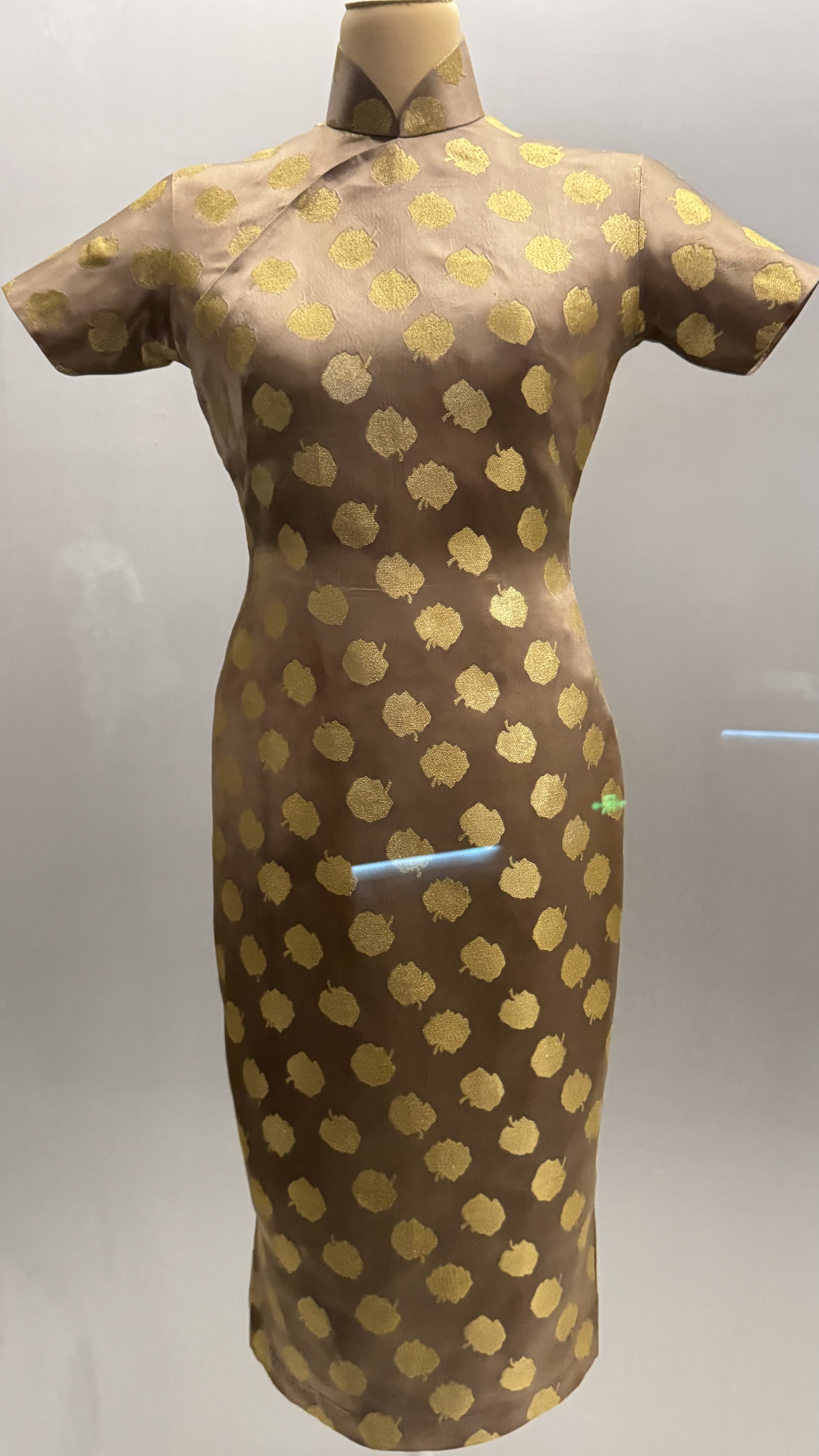 把这件海派旗袍分享给你|《棕色叶片纹织金缎旗袍 Brown Satin Qipao with Gold-Woven Leaf …