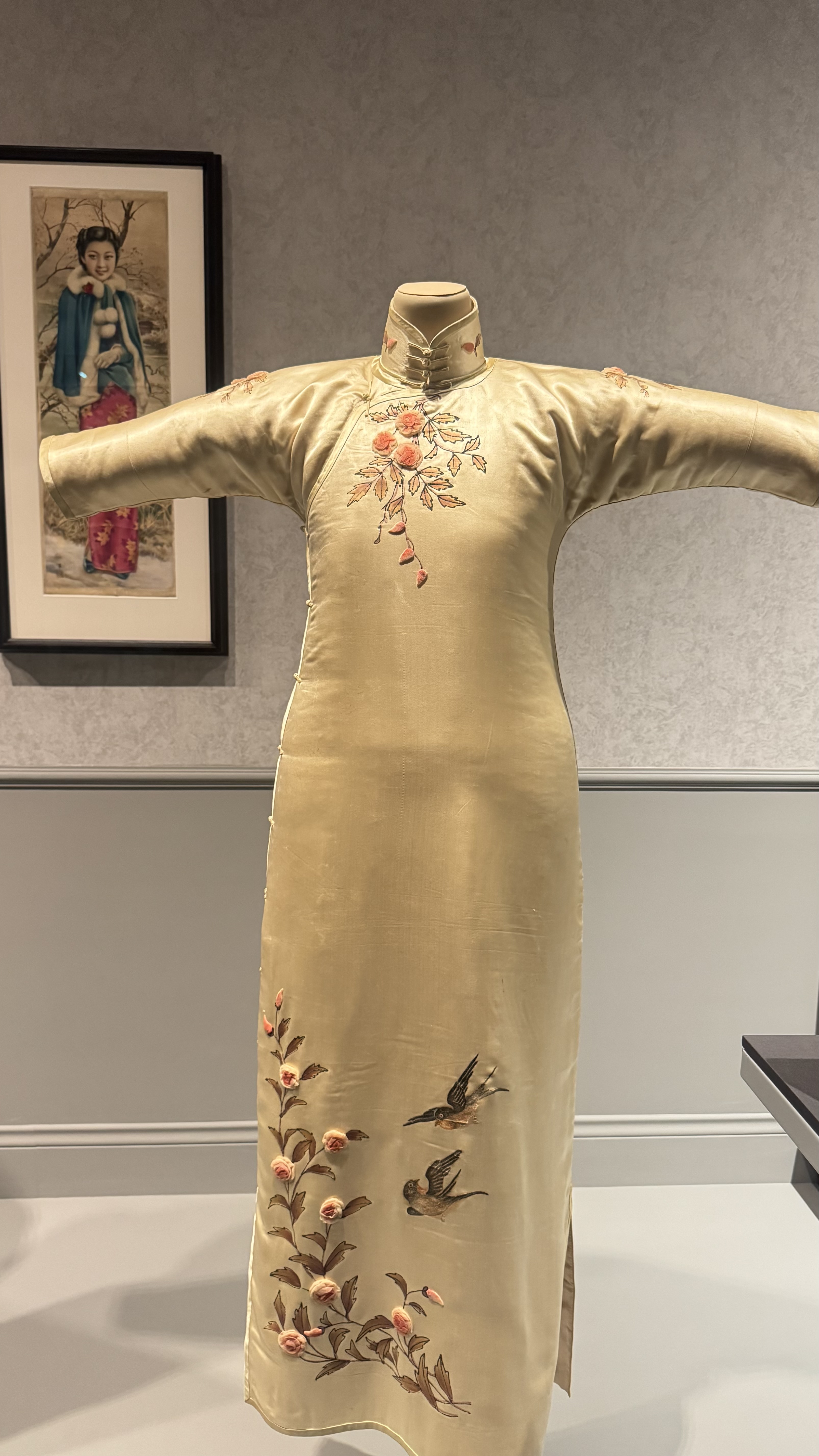 把这件海派旗袍分享给你|《米白缎地彩绘绣花乌图旗袍 Of-White Satin Qipao with Painted and…
