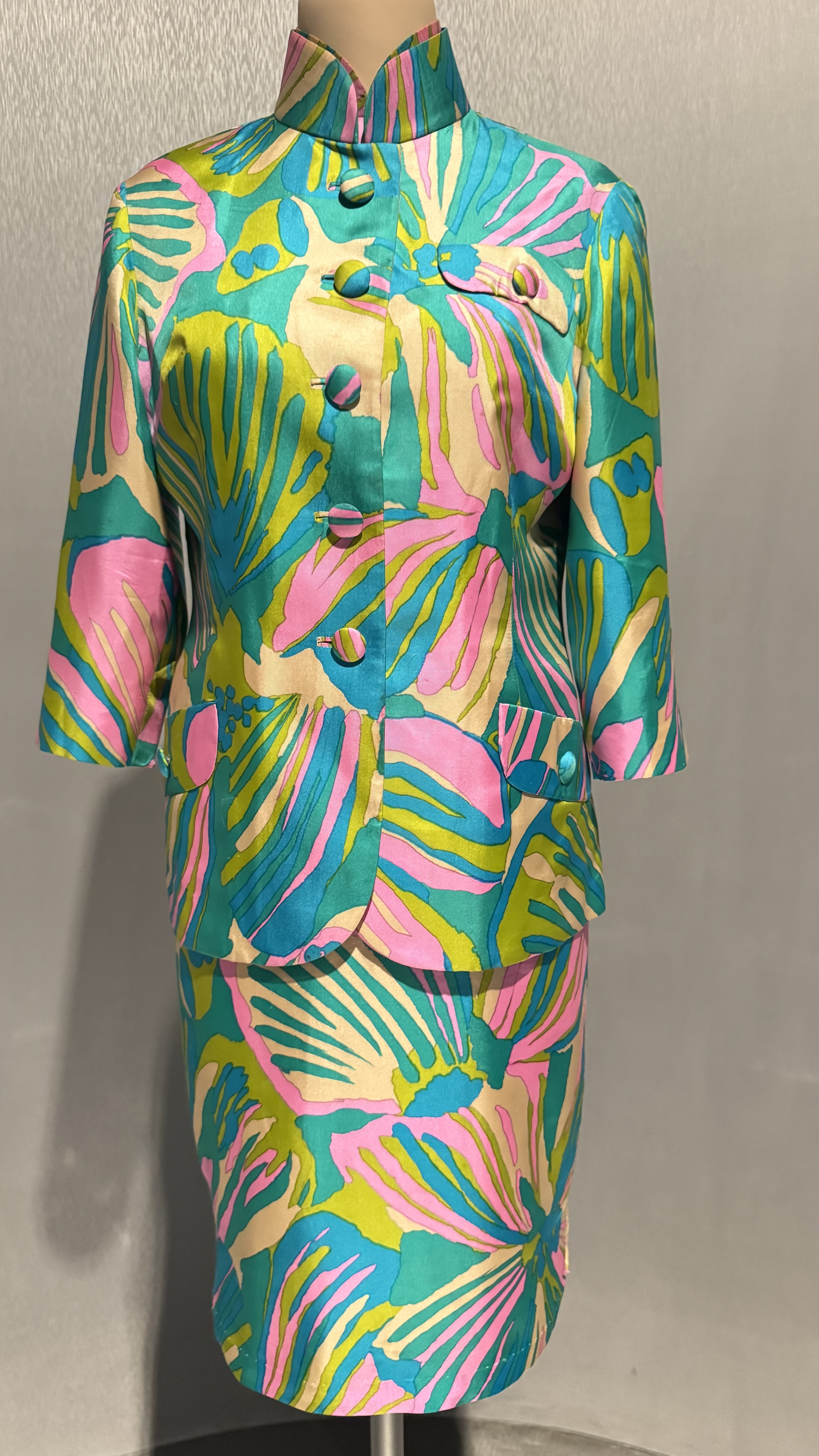 这款旗袍套装在端庄中透出松弛感,内搭旗袍的肩袖笼开襟设计兴起于20世纪60年代,令正面视觉…