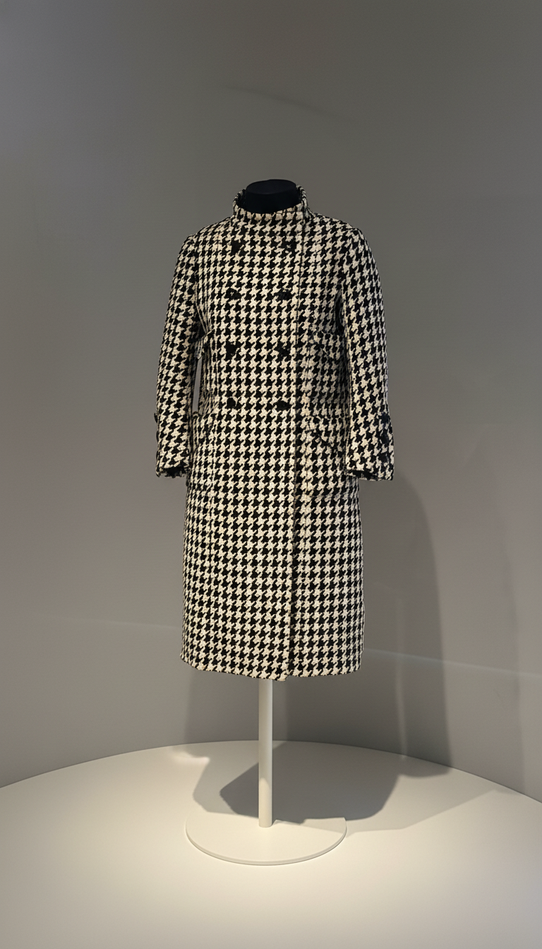 1967年春夏高级订制 嘉柏丽尔 香奈儿设计 Haute Couture Spring-Summer 1967 Gabrielle Chanel 巴黎香奈儿典藏 Patrimoine de CHANEL, Paris 当香奈儿以黑白千鸟格纹诠释现代女性的独立风姿,那利落的长大衣、立领与双排扣设计…