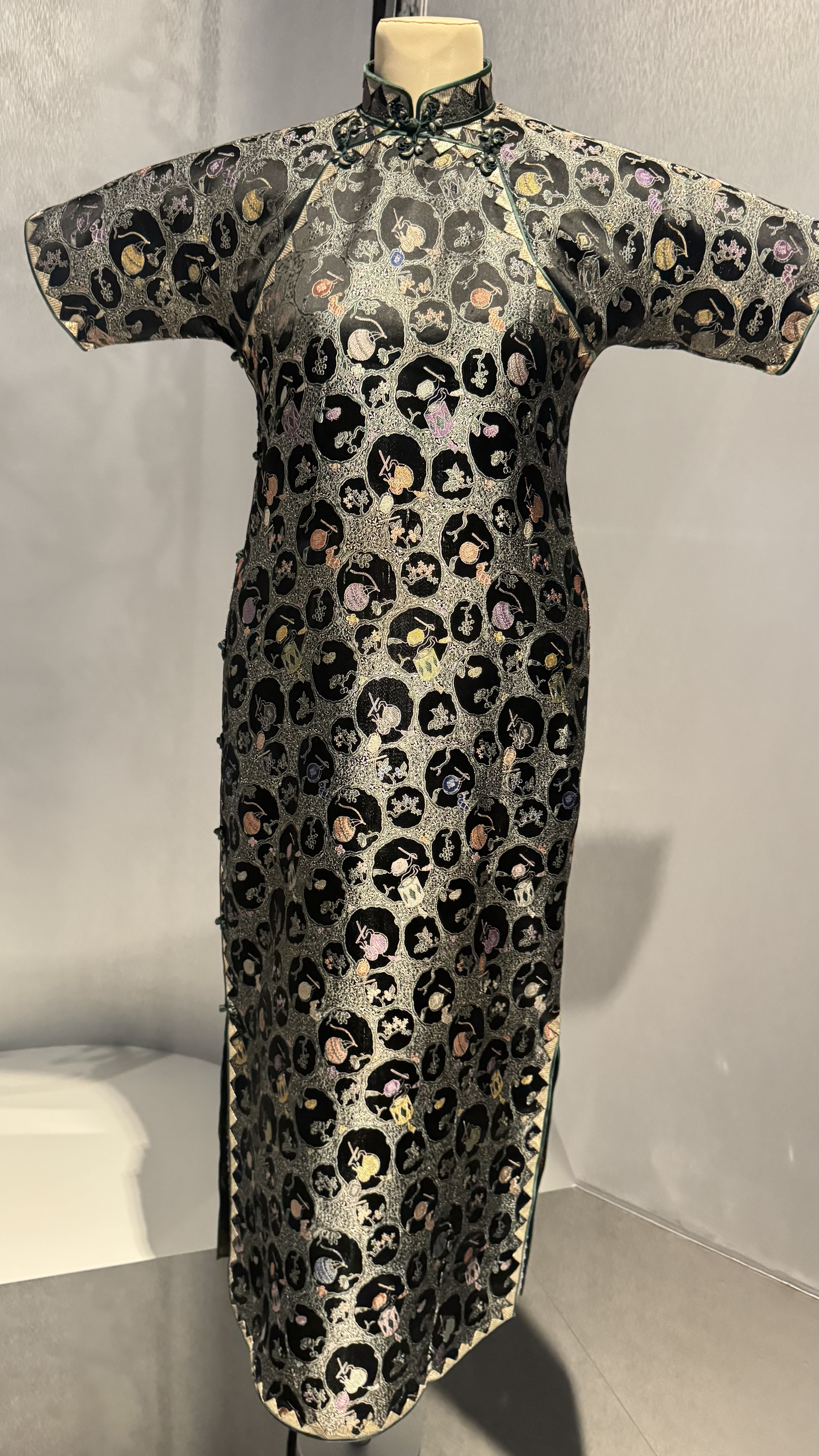 把这件海派旗袍分享给你|《黑色地团福禄寿喜灯笼纹织锦缎旗袍 Black Brocade Satin Qipao with Mo…
