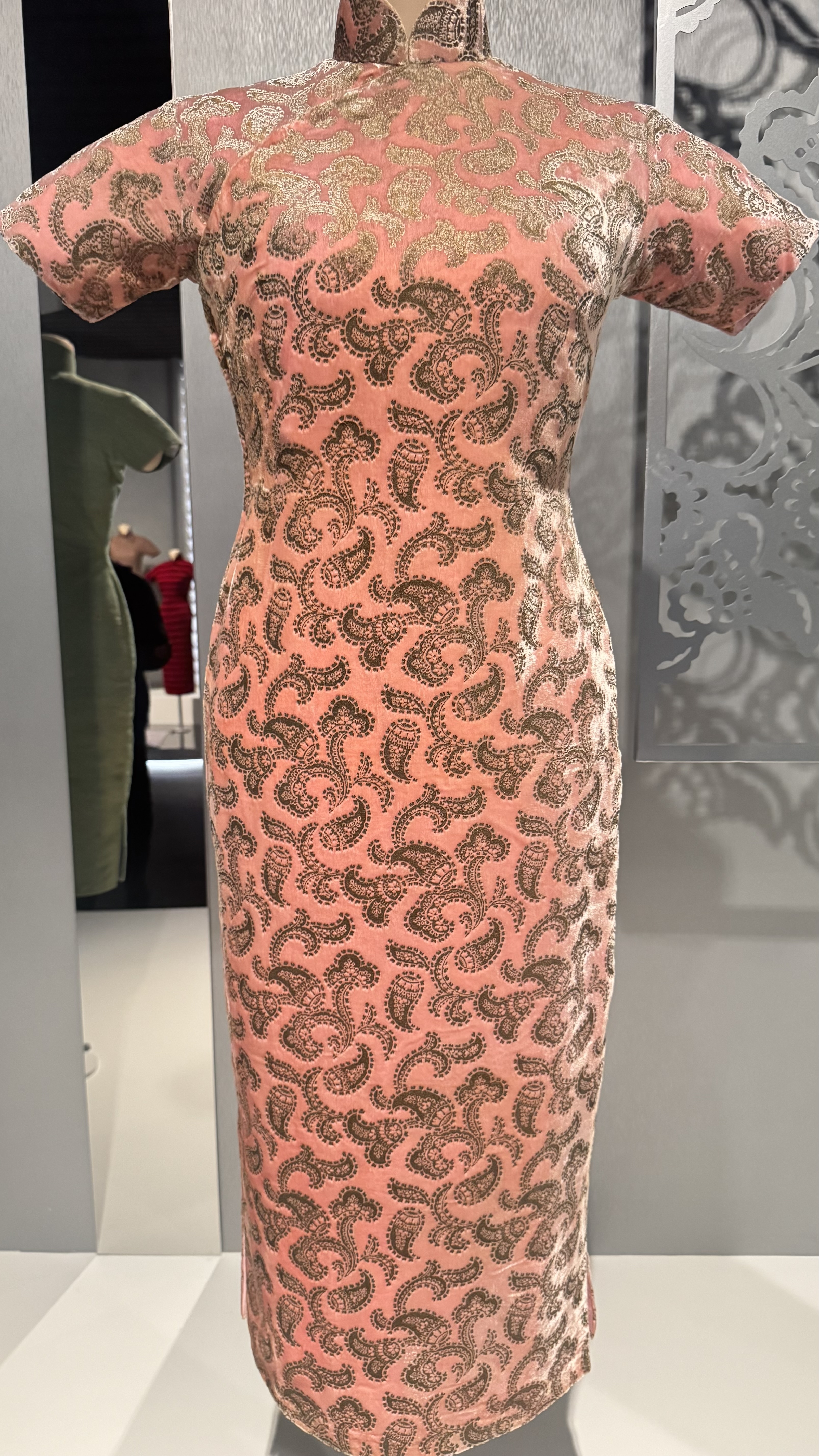 把这件海派旗袍分享给你|《橘粉鱼地佩斯利纹印金平绒旗袍 Orange-Pink Velveteen Qipao with Go…