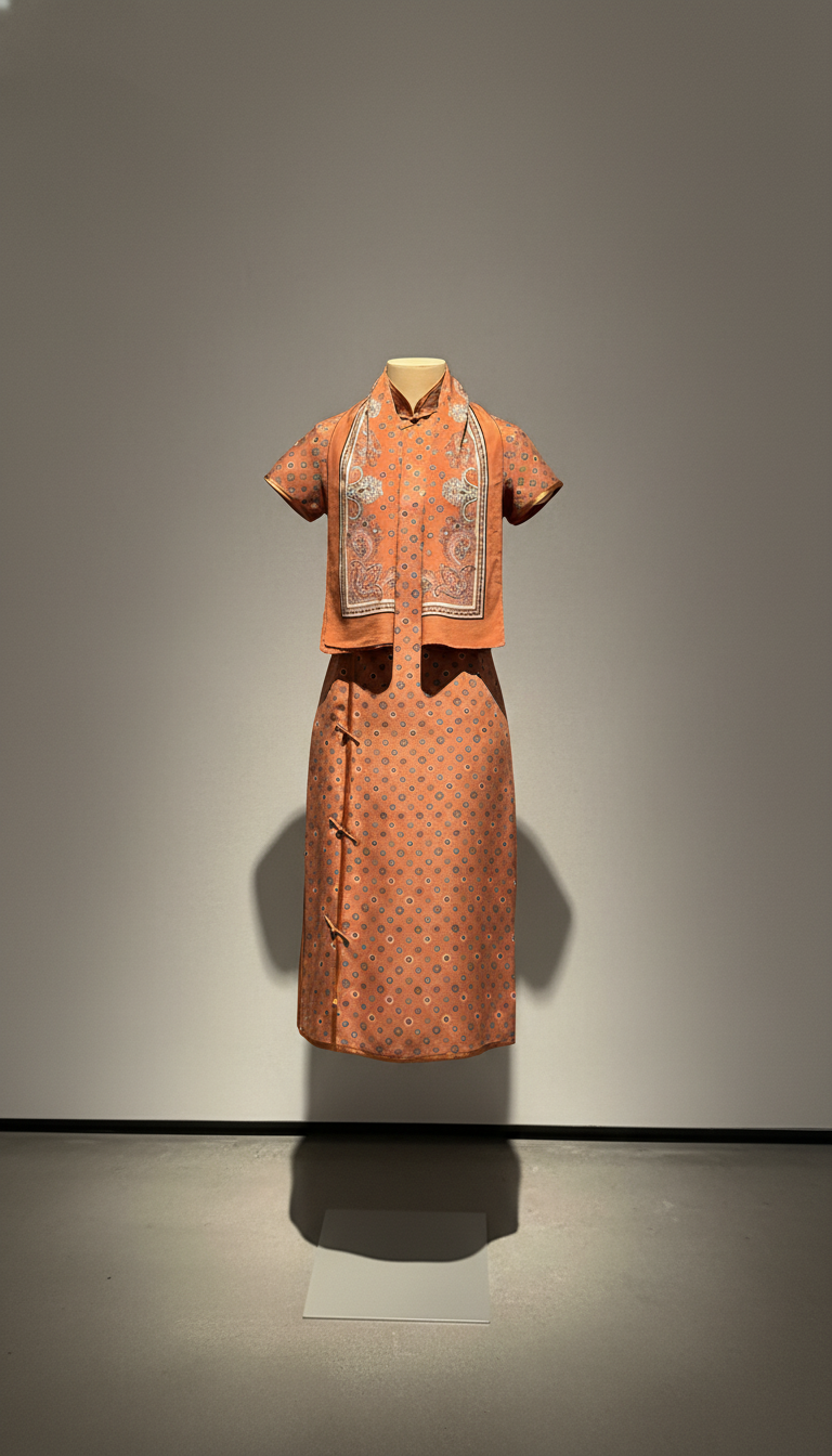 这款“直襟旗袍”以创新剪裁突破传统,衣襟直通下摆的设计赋予旗袍现代简约气质。这是蒋士云女士所钟爱的旗袍之一。…