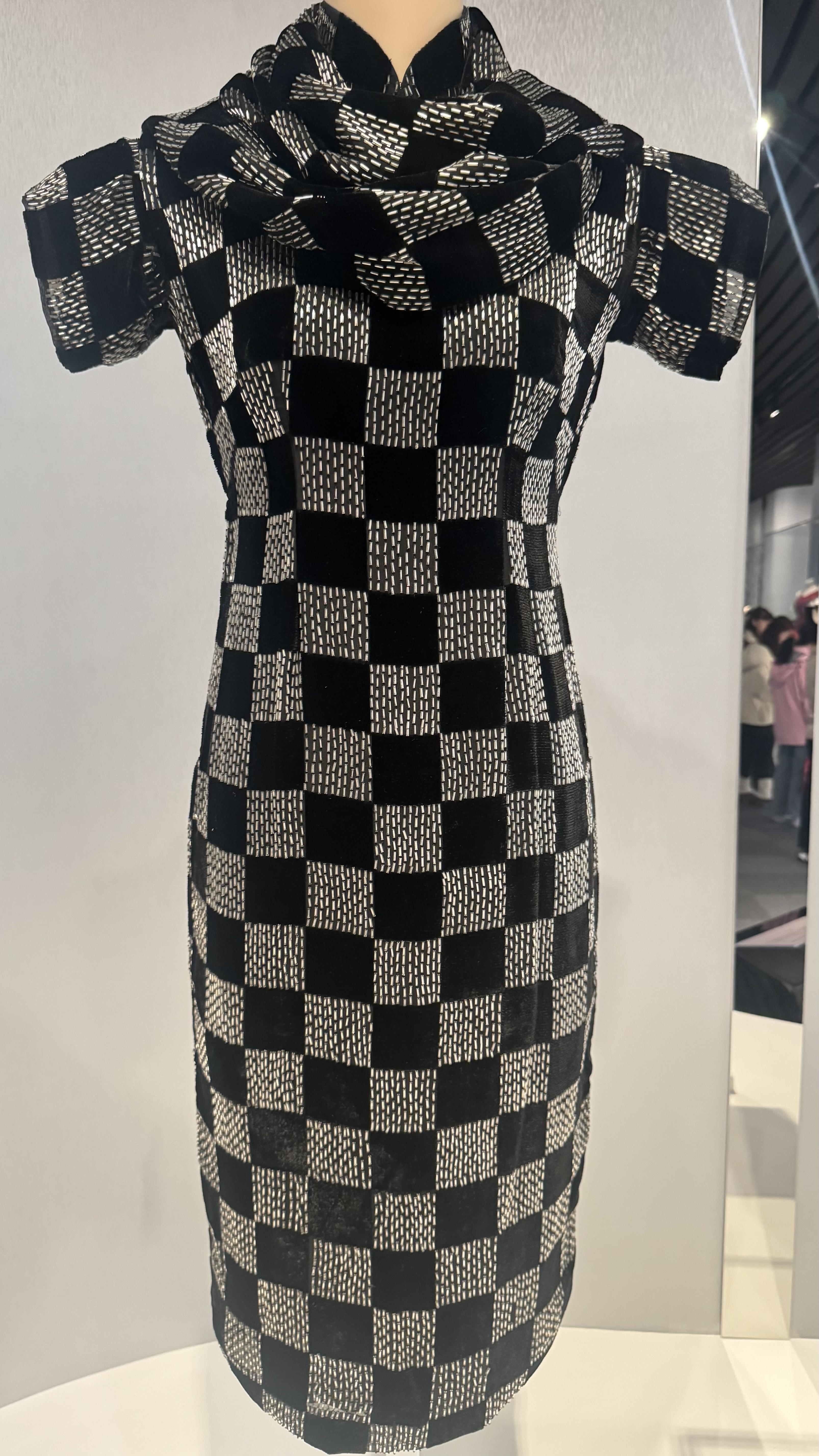 把这件海派旗袍分享给你|《黑魚地银鱼珠绣棋格纹烂花绒 旗袍披巾套装 Black Devoré Velvet Qipao and…