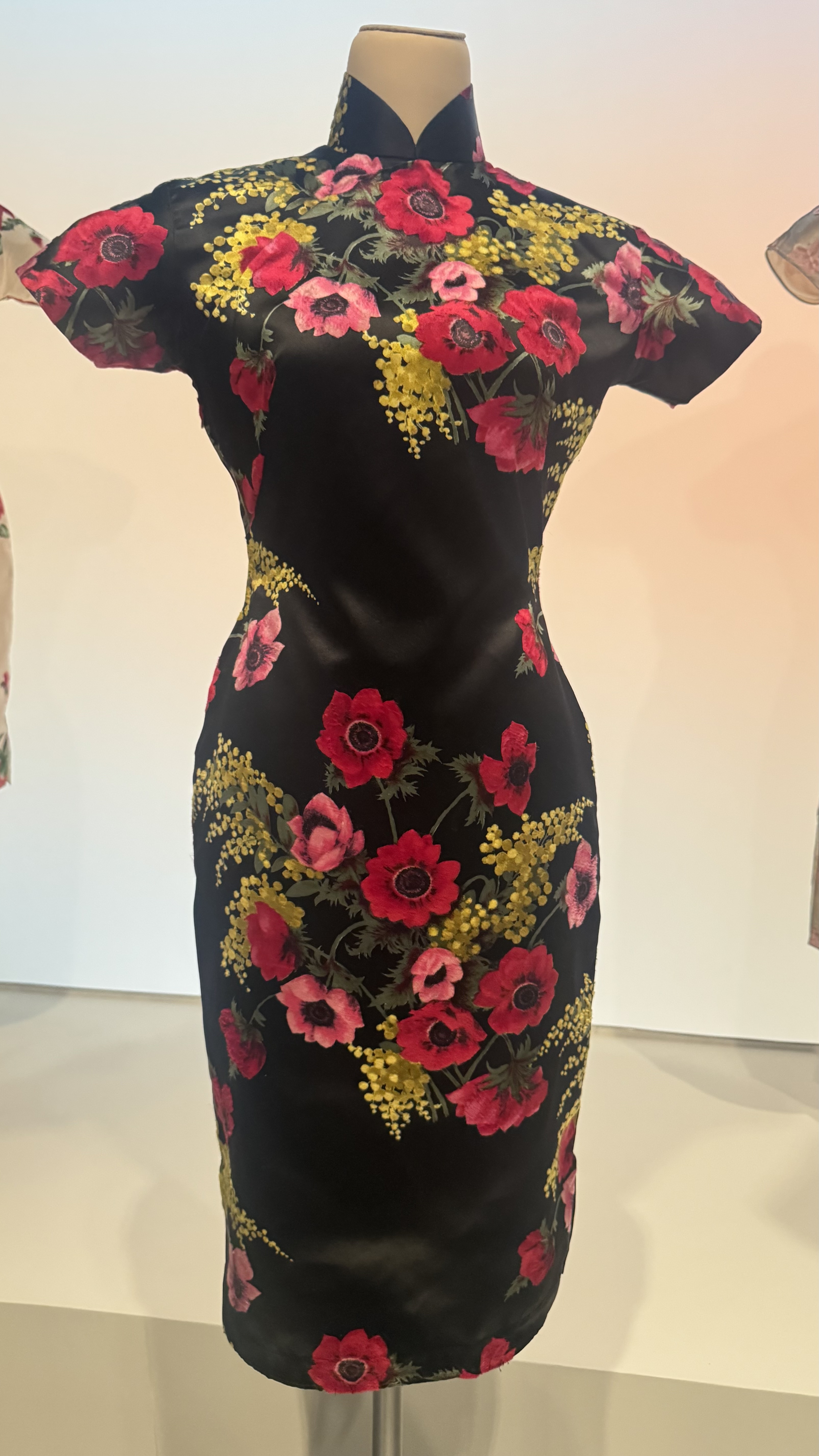把这件海派旗袍分享给你|《黑色缎地彩印花簇纹旗袍 Black Satin Qipao with Multi-Colored P…